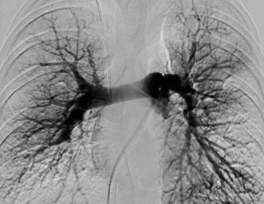 患者1-术毕造影提示绝大部分肺血栓已取出