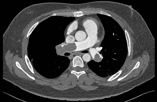 术前肺动脉CTA提示双肺动脉主干栓塞