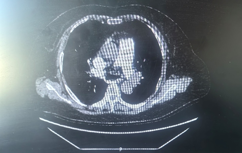 ,部分分支闭塞。左肺主干及多肺段均见充盈缺损。
