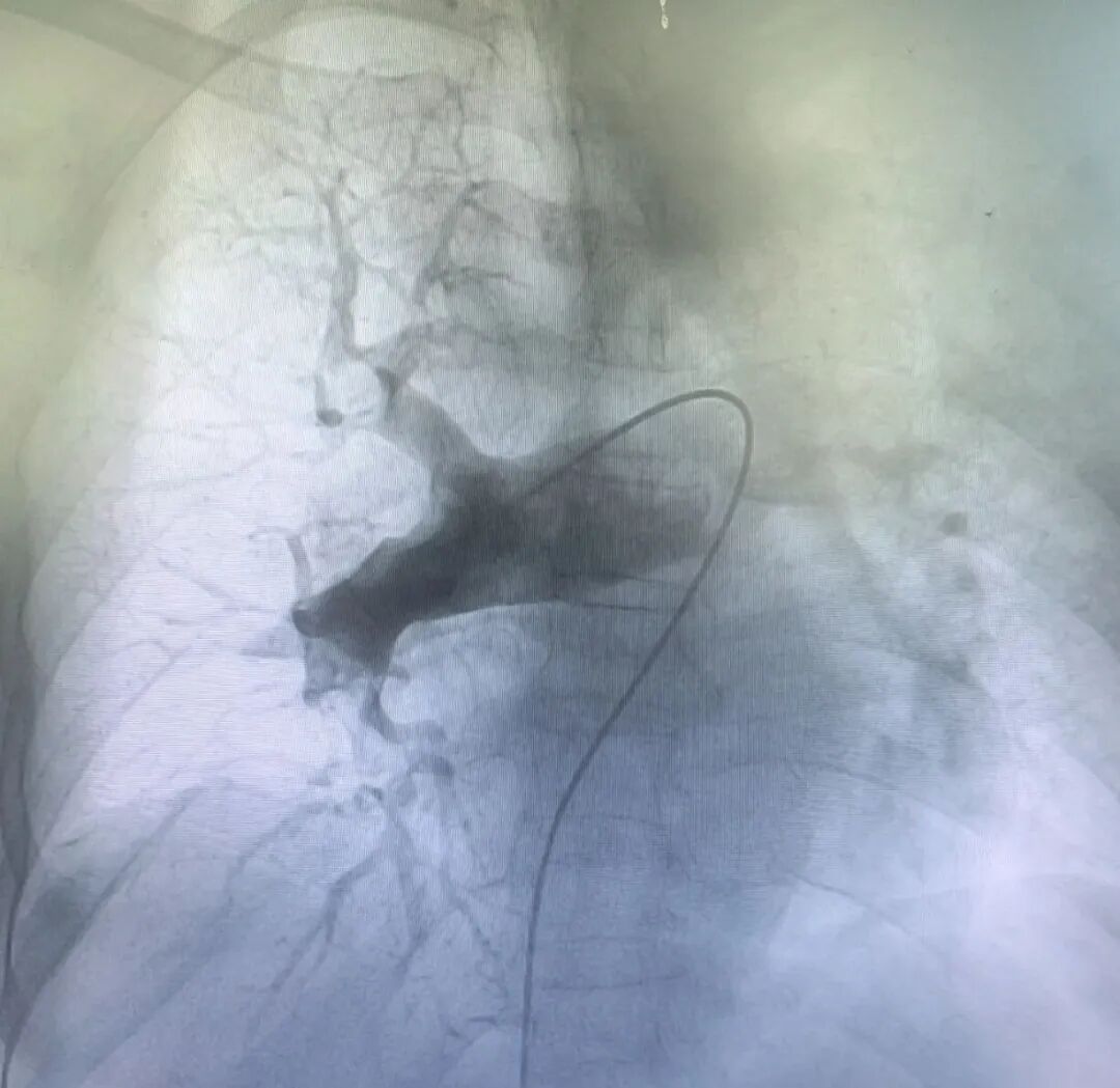 鉴于该患者血栓负荷重、溶栓风险高且伴有右心功能不全,属高危病例,经仔细评估和充分讨论风险状态和手术指征后,最终决定施行经皮肺动脉取栓术+球囊扩张成形术。
